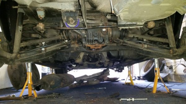 Raised nice and smoothly despite not lining up on the prop shaft first time. Everything pretty much reconnected, ARBs and exhaust to go!